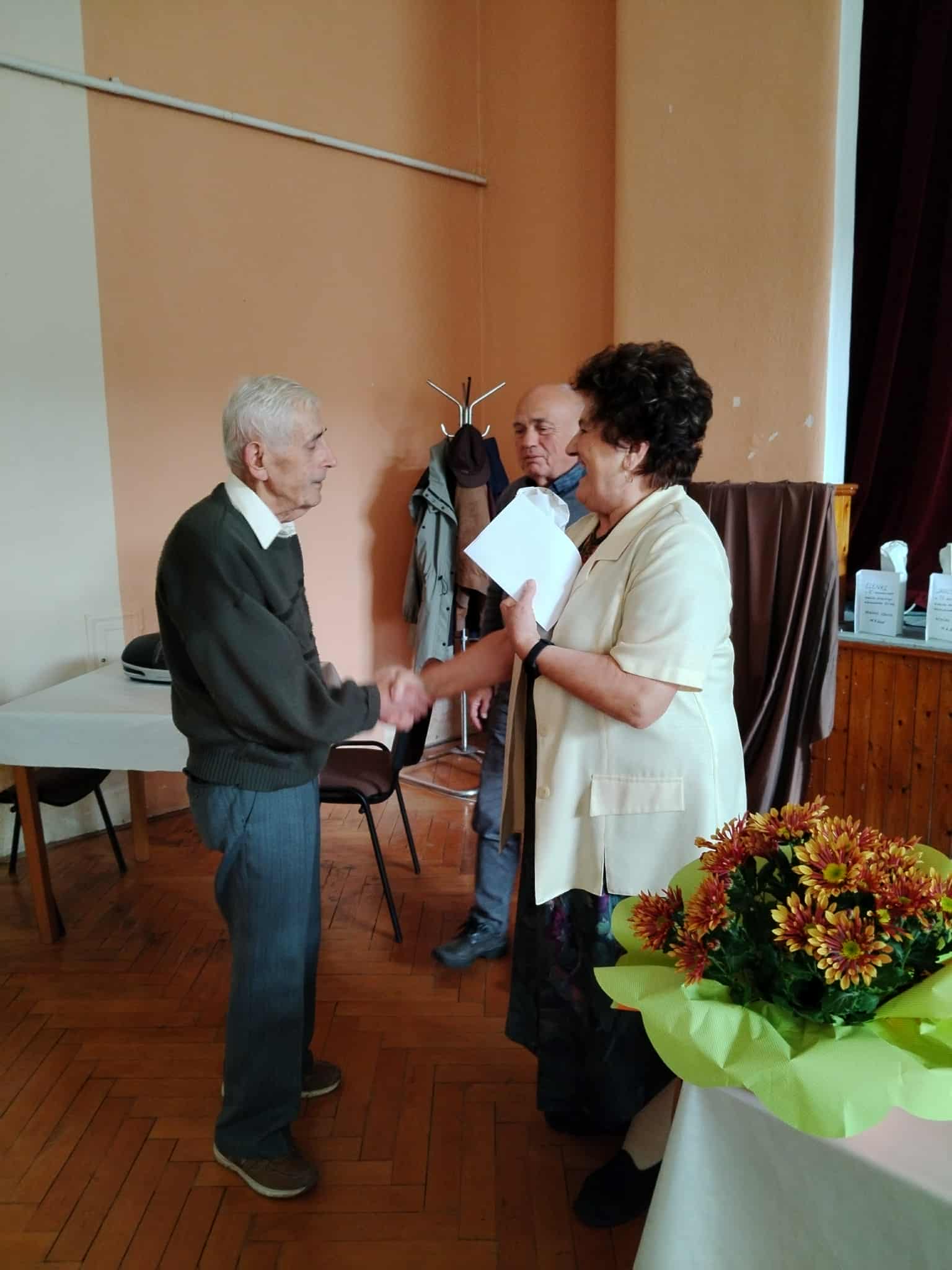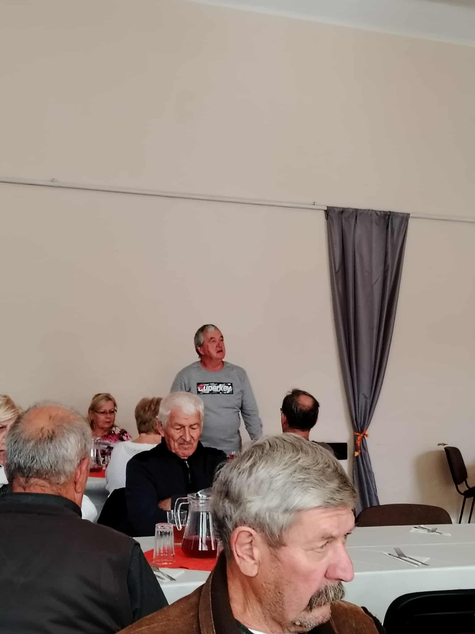 Vďaka za zorganizovanie patrí výboru ZO JDS a p. starostke za prípravu priestorov. Začiatok bol naplánovaný na štrnástu hodinu. Prišli všetci, ktorých choroba nepripútala na lôžko. Vstupovali s úsmevom na tvári, vítala ich hudba z magnetofónu a krásne vyzdobená sála KD. Po úvodnej básni, s ktorou veľmi dôstojne vystúpila členka organizácie p. M. Bajúsová, privítal prítomných p. D. Pavlák. K prítomným sa potom prihovorili p. Mgr. Mladšia, predsedníčka ZO a p. L. Benediktyová, starostka obce, ktorá zároveň informovala o tom, čo sa v obci v poslednom období urobilo a čo sa v najbližšom čase bude robiť. Menovite poďakovala členom, ktorí pomohli pri zveľaďovaní a skrášľovaní prostredia obce . Po tradičnom pozdravení jubilantov, ktorí pripravili „prípitok i zákusky „, bolo chutné občerstvenie, pri ktorom bola veselá voľná debata.