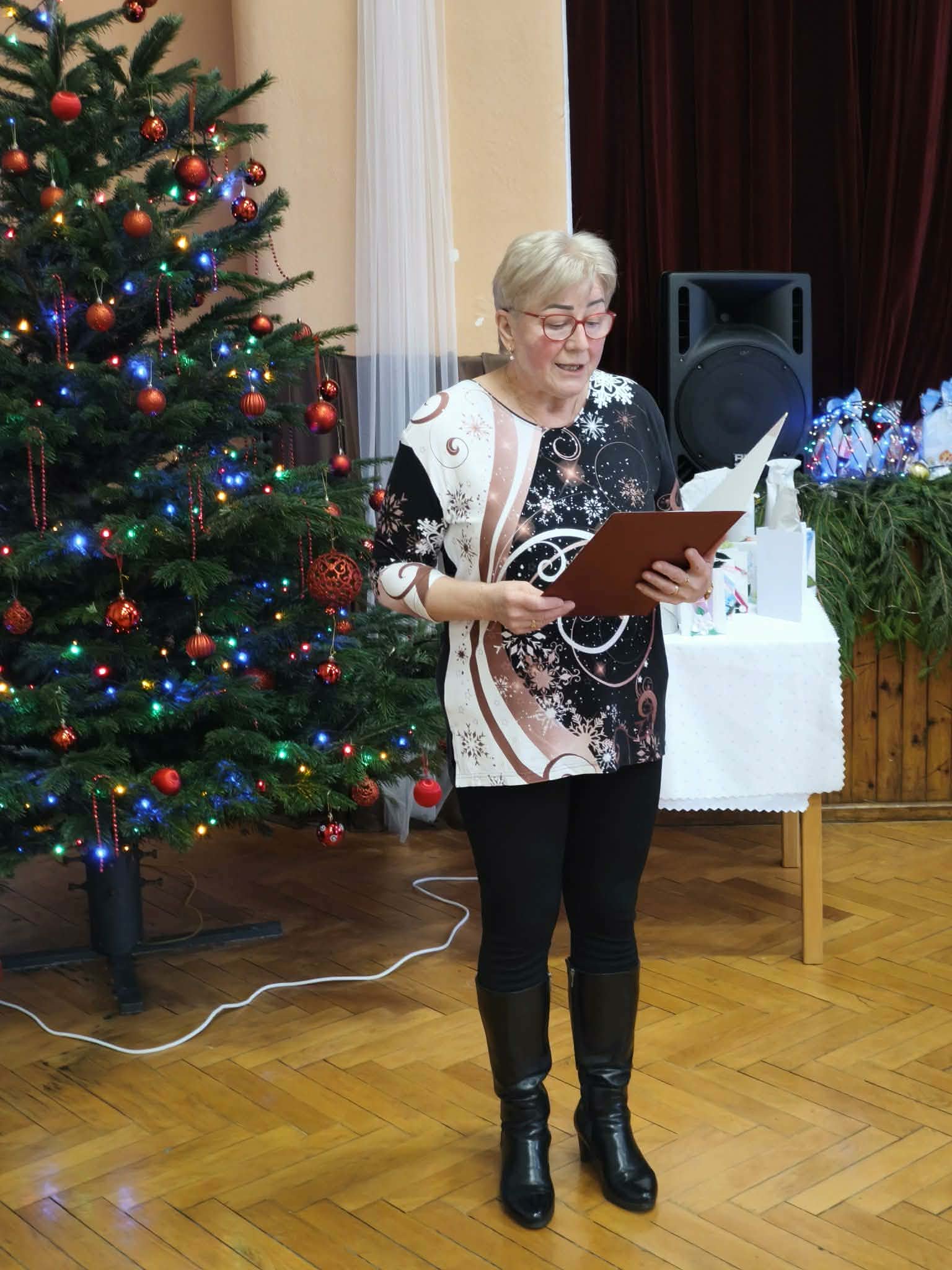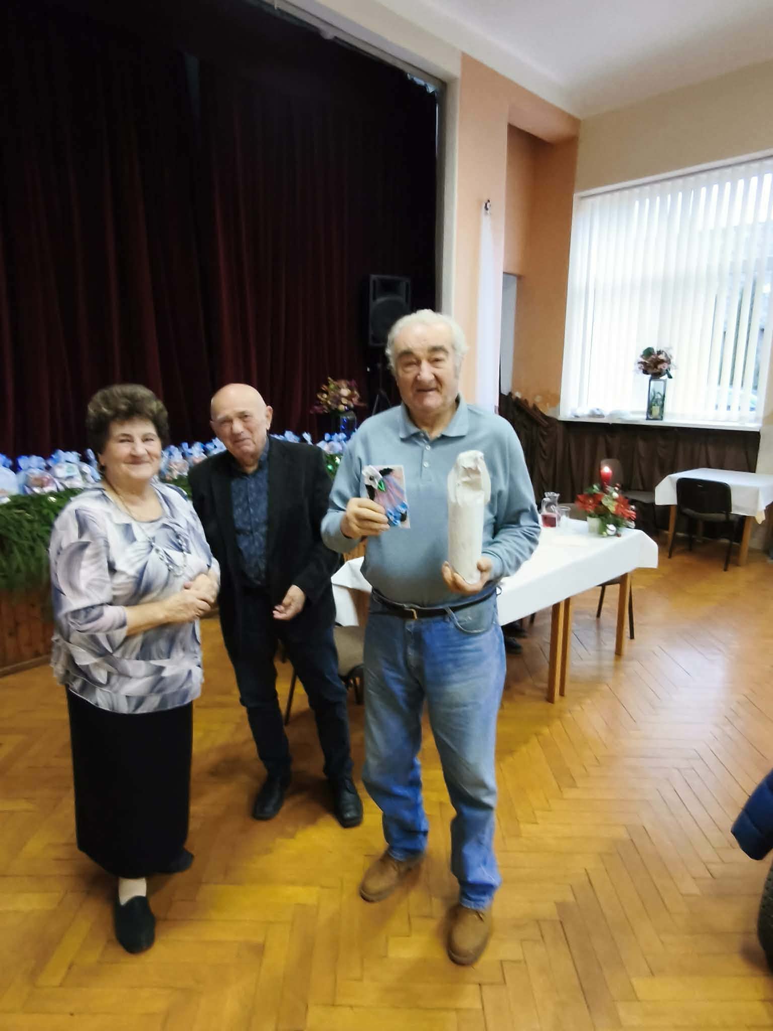 Vianočného ducha navodila básňou p. M. Bajúsová, prítomných privítal p. D. Pavlák. Slávnostné pozdravenie mali p. M. Mladšia a p. M. Besedová, ktoré krásnymi myšlienkami o Vianociach pozdravili všetkých prítomných. Ako to už býva dobrým zvykom, zablahoželali jubilantom , ktorí sa za posledné obdobie dožili okrúhlych jubileí. Oficiálnu čast ukončili zaspievaním vianočnej piesne „Tichá noc“. Ďakovným potleskom a radosťou na duši odmenili hudobné vystúpenie p. Ing. A. Tokára, ktorý prišiel pozdraviť seniorov takouto formou.