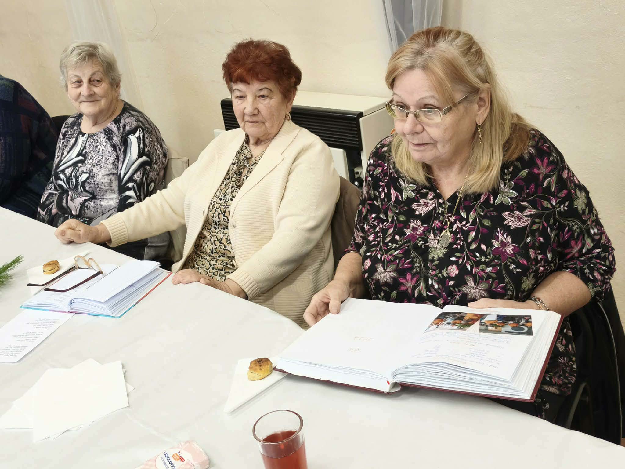 Pri bohatom občerstvení, ktoré zabezpečil výbor ZO JDS VĎAKA dobrosrdečným štedrým sponzorom , slávnostné posedenie pokračovalo v spomienkovej radostnej nálade. Ďakujeme tiež obci za balíčky, ktoré dostal každý člen pri odchode.