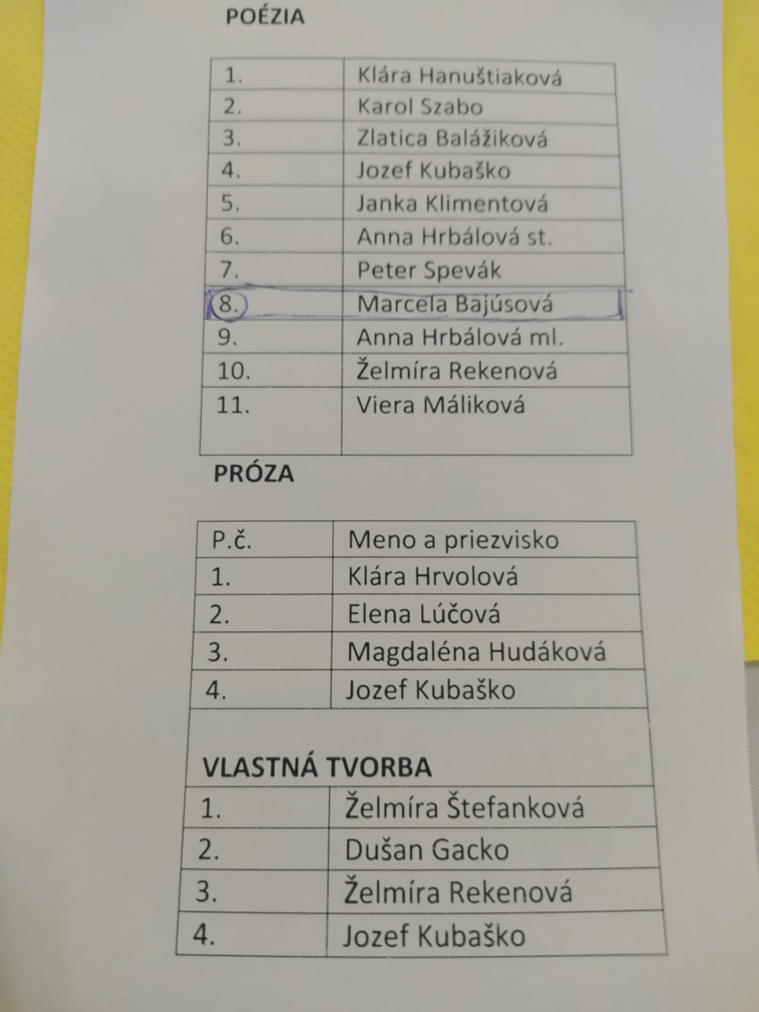 Jej vystúpenie bolo na patričnej úrovni, získala skúsenosti, keďže bola prvýkrát, srdečne jej ďakujeme za prípravu a vystúpenie a prajeme veľa chuti pri ďalších účinkovaniach. Povzbudzovať ju boli 3 naše členky.